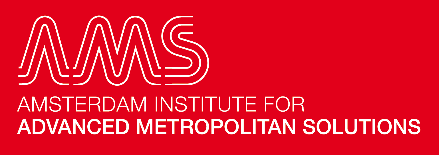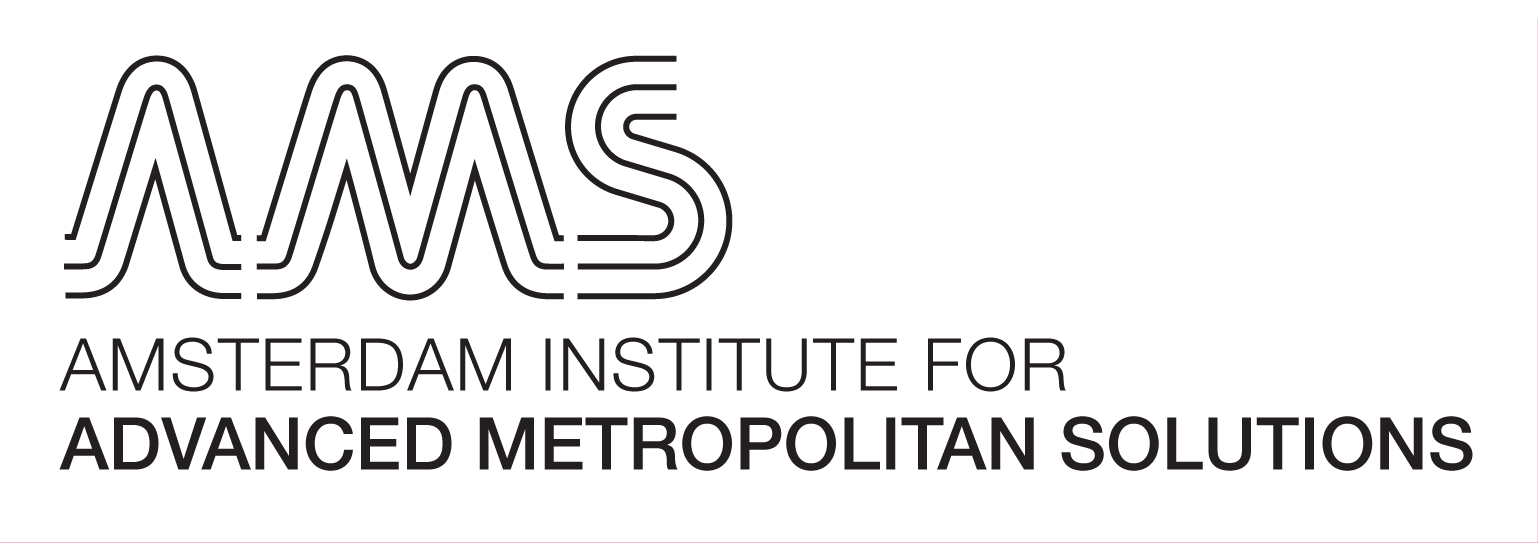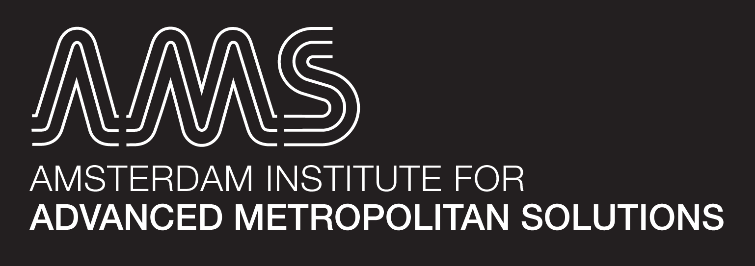 Logo for Amsterdam Institute for Advanced Metropolitan Solutions. The logo has 3 basic appearances, which are always either in black or white, boxed or unboxed in a series of selected coloursettings. The payoff ‘Advanced Metropolitan Solutions’ is integral part of the logo. 2013.