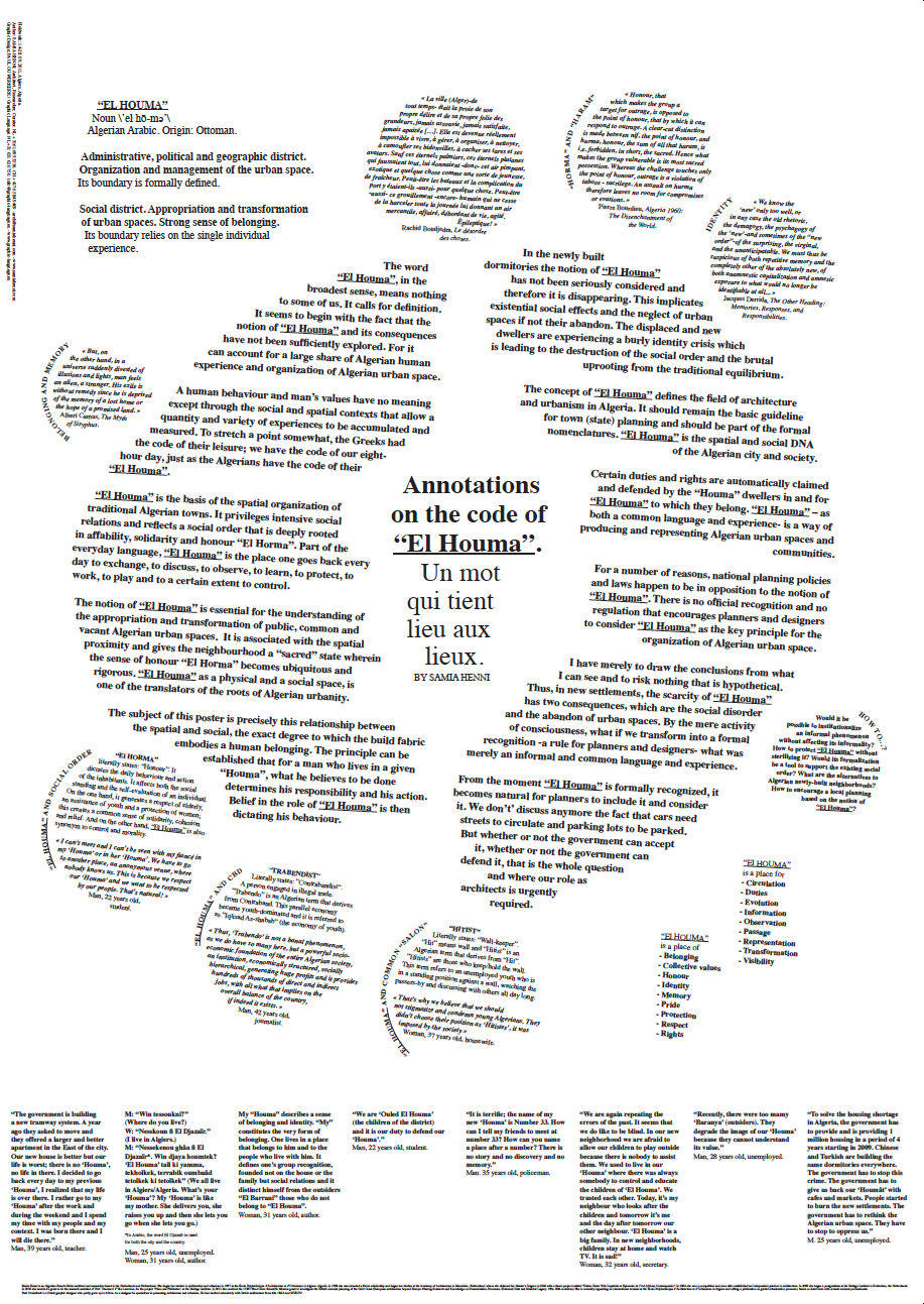 Annotations on the code of ‘El Houma’. A1 poster for Samia Henni’s presentation at Casablanca’s 2011 African Perspectives conference.