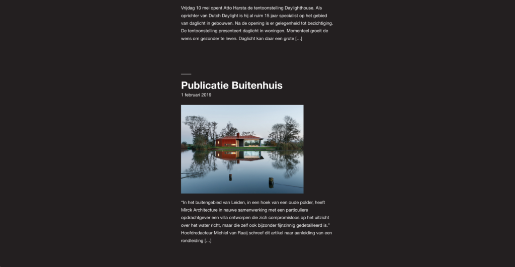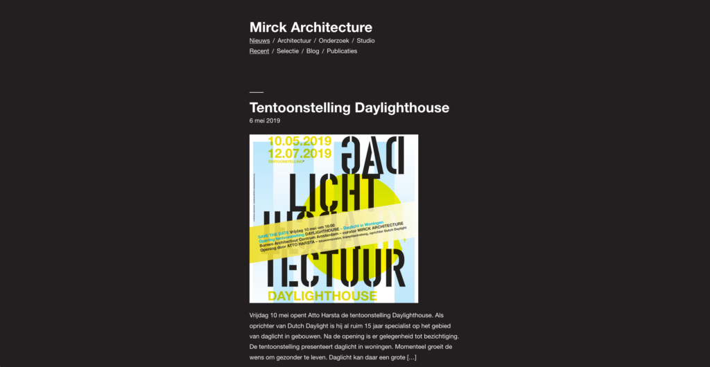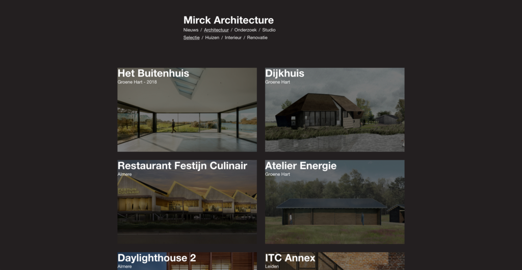 The new website for MIRCK Architecture is based on a minimalistic template. Opening movie provided by Mirck.