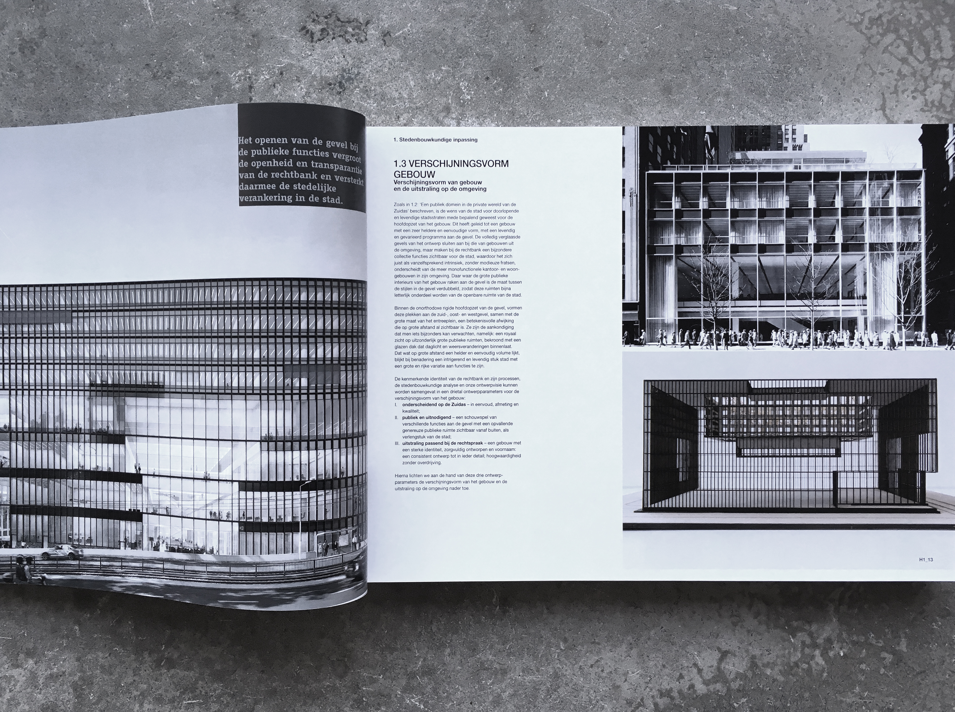 Rechtbank Amsterdam. The Amsterdam Courthouse tender. For Rob Hootsmans Architectuurbureau and consortium. Project branding, book design. 2016.