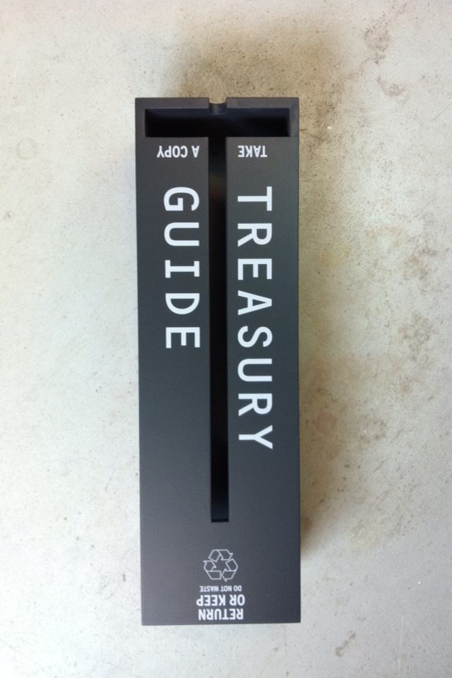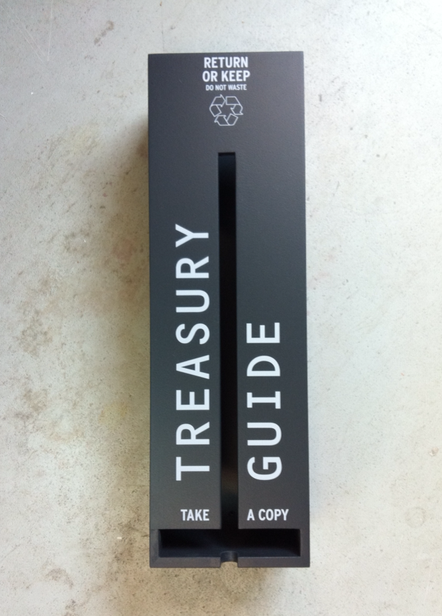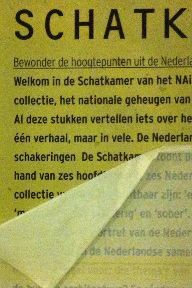 Signage and typography, labeling of exhibit objects, exhibition texts for OMA designed exhibition ‘TREASURY/SCHATKAMER’ at the Nederlands Architectuurinstituut (NAi). 2011.